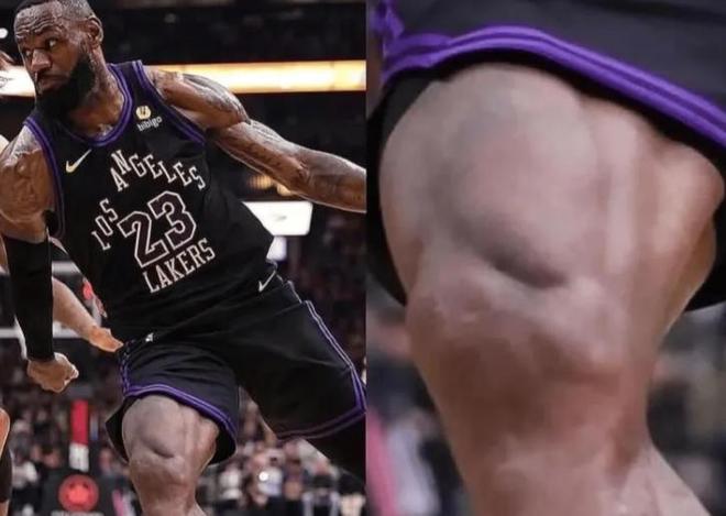 比赛中,他甚至可以上演单手劈扣,身体状态太好了,以至于有媒体晒出詹姆斯在发力时,他大腿粗壮的肌肉线条,光着看就知道詹姆斯腿上力量一定很足。
